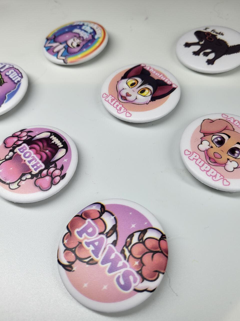 buttons, keychains, stickers